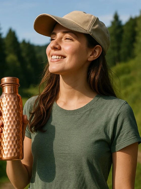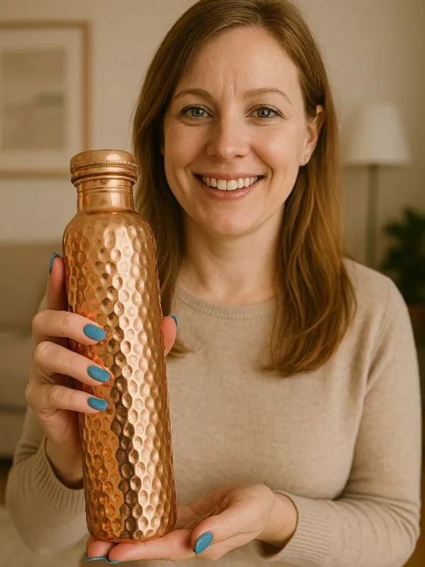 L'eau de cuivre est traditionnellement bue le matin à jeun après avoir reposé toute la nuit dans la bouteille. C'est un geste simple qui prend moins d'une minute mais lance votre journée avec une vague de vitalité.