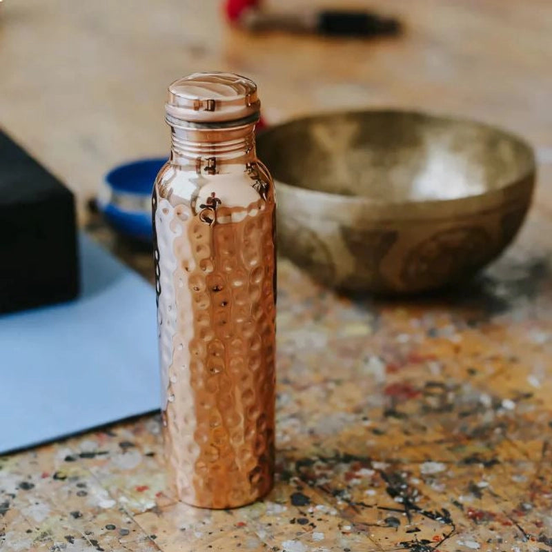 La Prāṇa Copper allie tradition et design moderne. Le cuivre pur martelé n'est pas seulement beau, il offre une prise agréable et renforce cette sensation d'objet précieux. C'est un investissement dans votre santé et votre style.