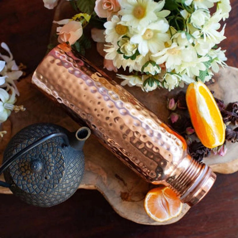 Selon les principes de l'Ayurveda, l'eau conservée dans un récipient en cuivre pur est chargée d'énergie positive et peut aider à équilibrer les doshas. C'est une tradition millénaire pour revitaliser le corps et l'esprit, un secret de bien-être naturel.